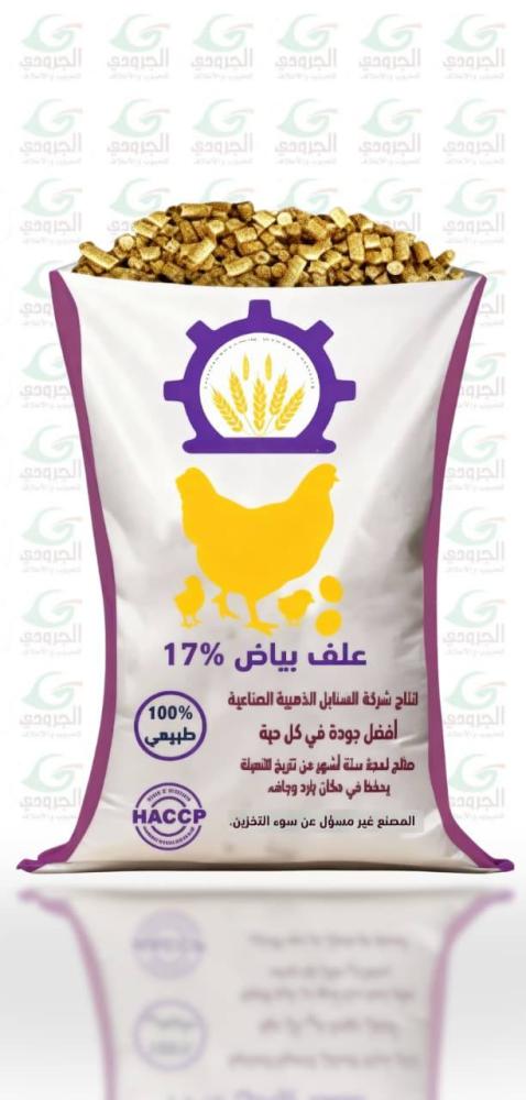 ابدأ يوم دواجنك بتغذية مثالية مع علف البياض 17% من السنابل الذهبية، وكن على ثقة أن إنتاجك اليومي سيكون أوفر وأجود — اطلبه الآن من متجر الجرودي.