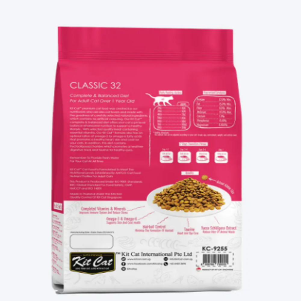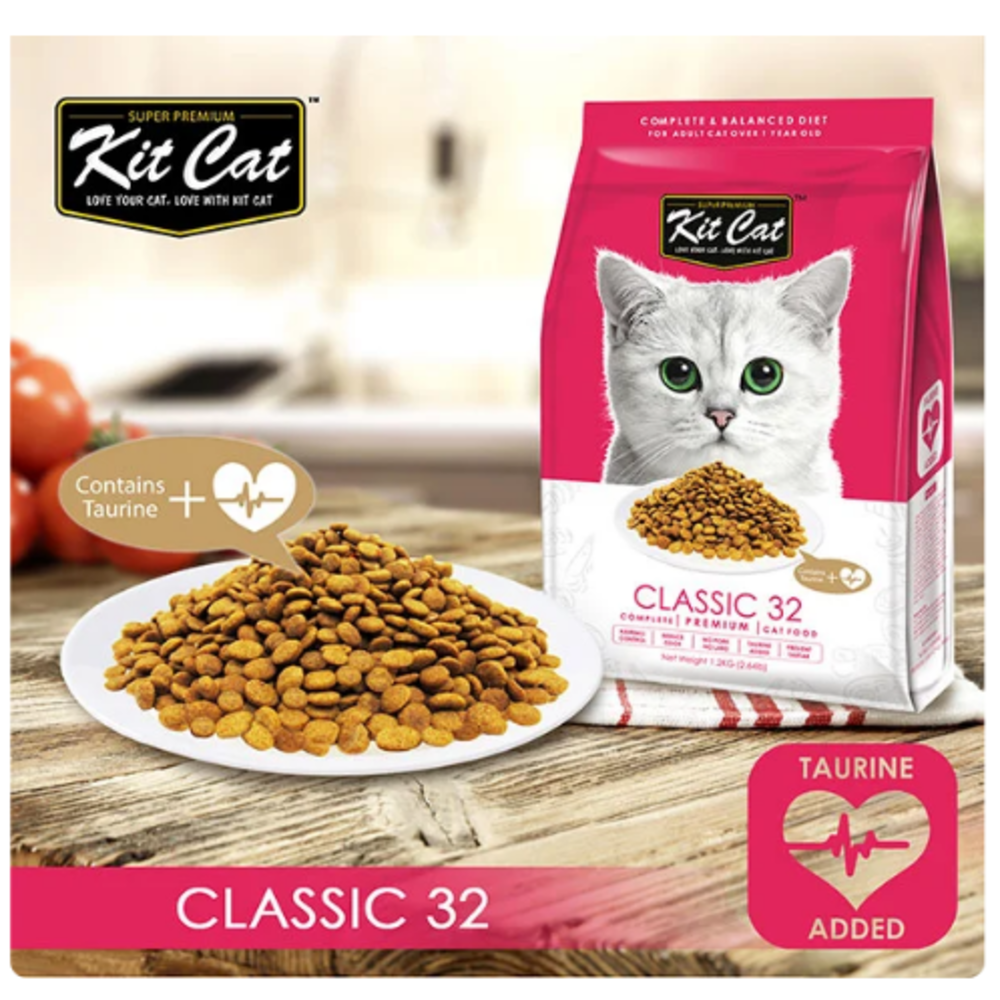 طعام القطط الجاف كت كات كلاسيك 32 مع التورين 1.2 كج هو وجبة متوازنة وصحية للقطط البالغة. يحتوي على مزيج غني من البروتينات والفيتامينات والمعادن الأساسية التي تدعم صحة القلب، العينين والجهاز المناعي، بفضل إضافة التورين الضروري لصحة القطط. تعمل الحبيبات الصغيرة والمتوازنة على تعزيز الهضم وتقوية الأسنان واللثة، بينما توفر التغذية اليومية المثالية للحفاظ على وزن صحي ونشاط دائم. مع كت كات كلاسيك 32، ستستمتع قطتك بطعم لذيذ وجودة عالية تضمن لها الصحة والسعادة اليومية.