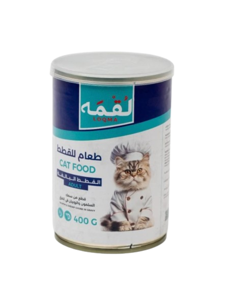 لقمةاكل رطب للقطط البالغه سمك السالمون والروبيان في المرق 400ج