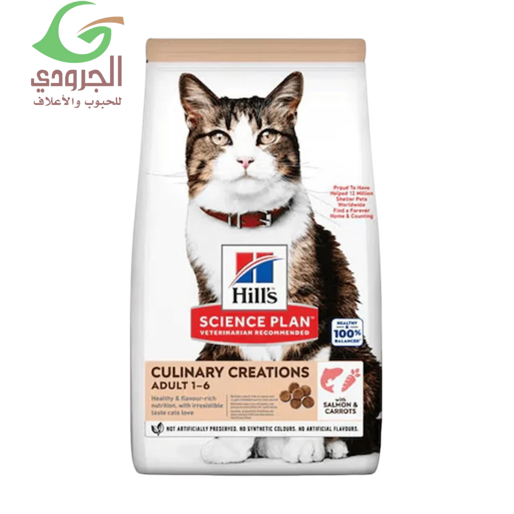 هيلز طعام جاف للقطط البالغة بالسالمون والجزر وجبة غذائية متكاملة مصممة لدعم صحة القطط اليومية