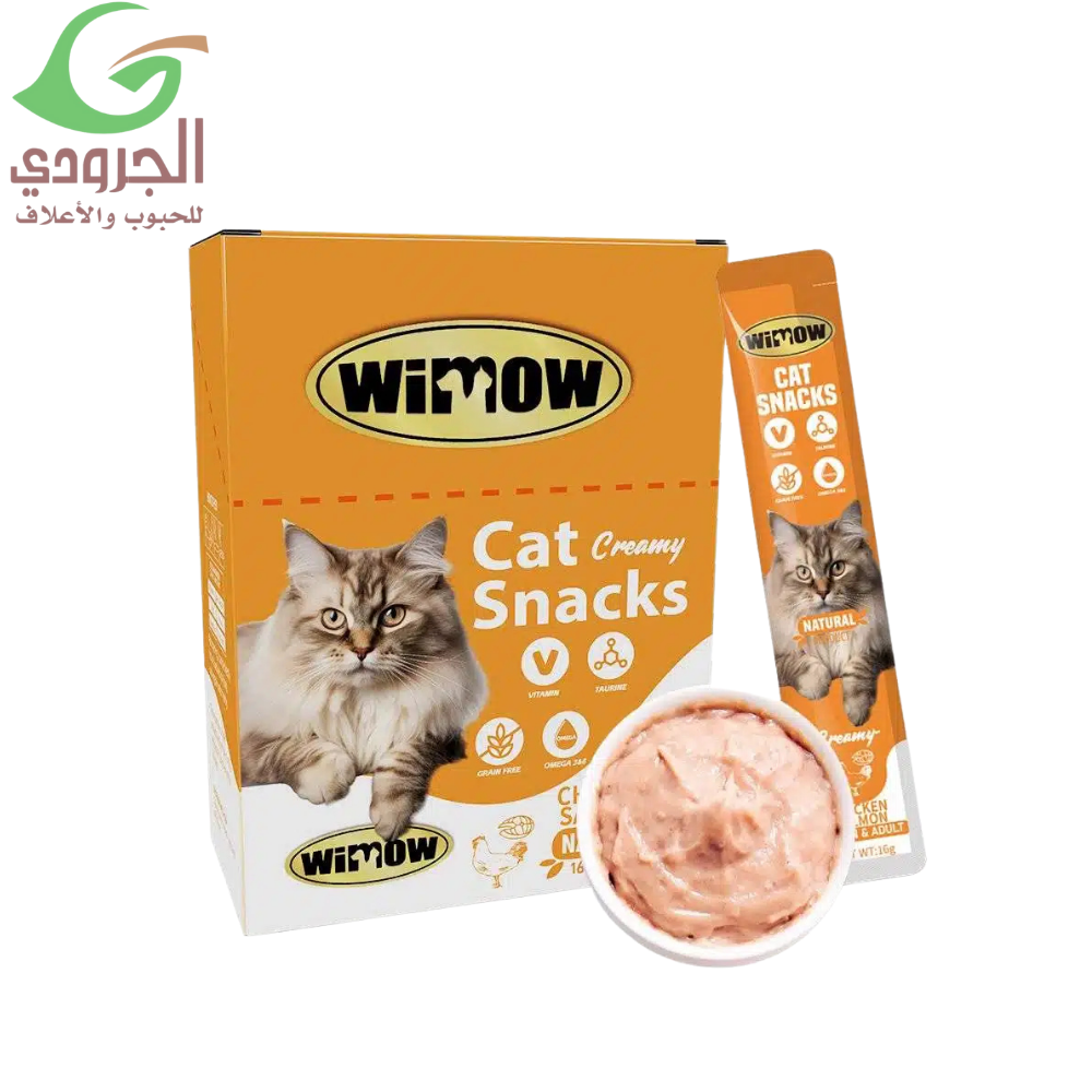 مكافآت ويمو الكريمية للقطط بنكهة الدجاج والسلمون، قوام ناعم وشهي تحبه القطط، مثالية كمكافأة يومية أو أثناء التدريب. سهلة الهضم والتقديم، عبوة اقتصادية 16 جرام × 45 قطعة.