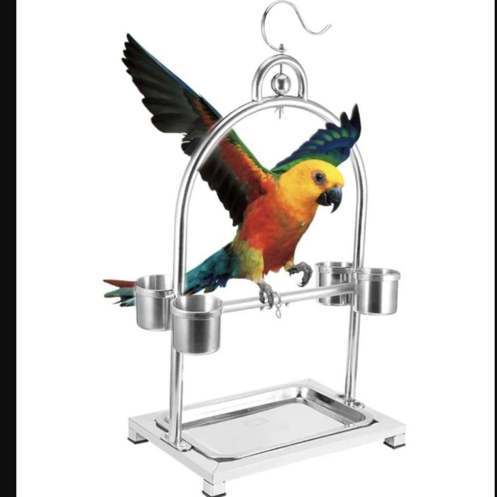 /Birds/A modern and attractive stainless steel stand that helps the bird break the barrier between it and humans, learn quickly, and gives the bird a more suitable atmosphere with feeding units.