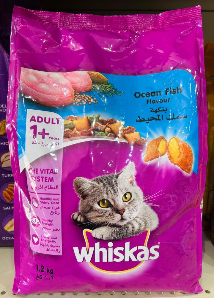 Whiskas dry cat food na may lasa ng isda sa karagatan na 1.2 kg